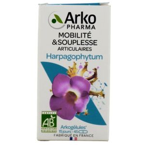Glucosamine HCL (crustacés), antiagglomérants : cellulose microcristalline - stéarate de magnésium, extrait d'harpagophytum, méthylsulfonylméthane, phosphate tricalcique, chondroïtine sulfate, agent de charge : maltodextrine, extrait d'ortie, carbonate de calcium (amidon de maïs), émulsifiant : mono et diglycéride d'acides gras, complexe de curcumine (gammacyclodextrine, extrait de curcuma), gluconate de manganèse, gluconate de cuivre, vitamine D3 (amidons modifiés, sucre, triglycérides à chaîne moyenne, tocopherols naturels).