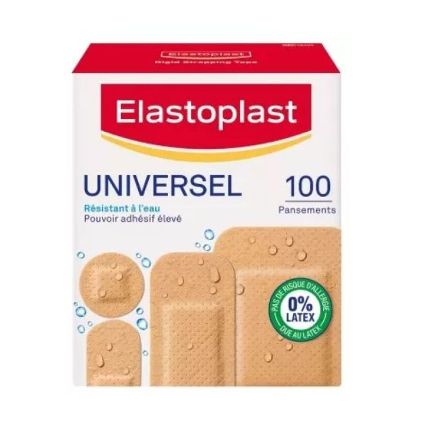 Elastoplast Pansement Universel 100 Pansements 4 Tailles est une protection pour couvrir et protéger les petites blessures quotidiennes telles que les égratignures, coupures et éraflures. Résistants à l'eau et à la saleté, ces pansements au pouvoir adhésif élevé sont adaptés à divers usages. La compresse absorbante non collante laisse respirer la peau.